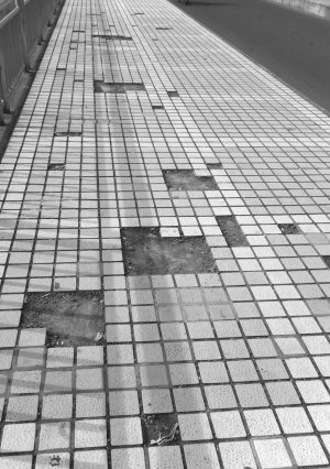 嵊州大桥两侧的人行道高低不平,一个个缺口,远看就像一幅还未完工的积木图。希相关部门能尽快修复一下,还大桥一个完美形象。