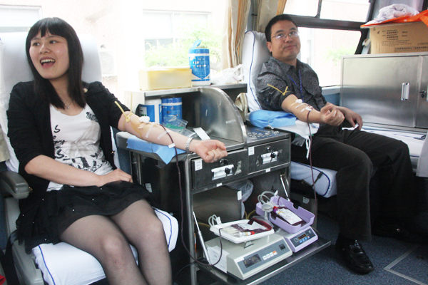 4月20日,逸夫小学30多名党员教师积极响应学校党支部关于开展“无偿献血活动”的号召,经过献血前的检查,有15名党员教师符合献血要求,当天献血4100毫升。图为献血现场。