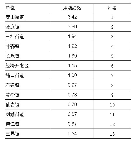 嵊州市2011年度各乡镇(街道)、开发区规模以上企业用能绩效排名