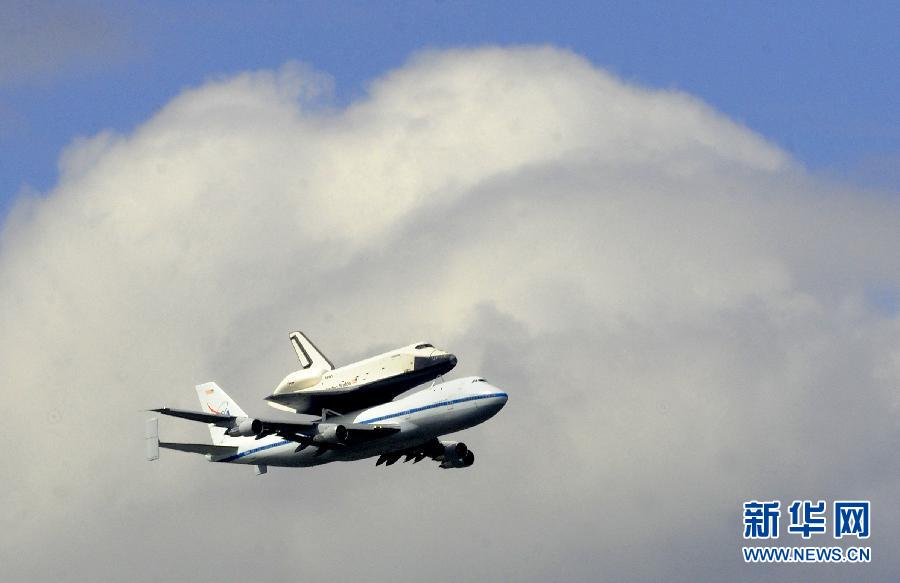 4月27日,“企业”号航天飞机由一架改装后的波音747飞机运载从哈得孙河上空飞过。当天,美国“企业”号航天飞机由一架经过改装的波音747飞机运载,在纽约上空飞行。完成飞行后,“企业”号航天飞机将被停放在纽约的无畏海空博物馆。新华社记者申宏摄