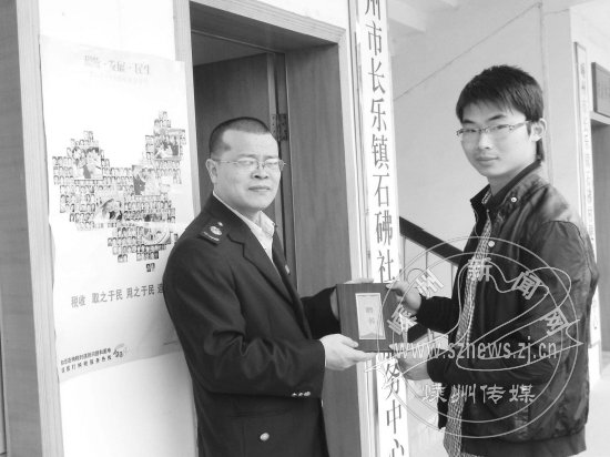 为更好地做好税收宣传工作,让税收知识普及千家万户,近日,市国税局对长乐镇一批大学生村官发放了聘书,聘请他们担任义务税收宣传员。图为国税工作人员在长乐镇石砩村向大学生村官发放聘书。