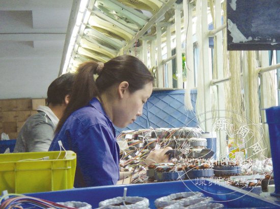 今年一季度,嵊州东方电机有限公司的用地、用能绩效居同行业前列,去年该公司的亩均纳税也居同行业前列。更为可喜的是,2011年,该公司成为中国空调家电行业的领军品牌“奥克斯”集团的战略合作伙伴。据悉,嵊州东方电机有限公司生产的“空调电机”和“风扇电机”成了众多著名品牌电器的指定产品,产品远销美国、欧盟、中东及东南亚等国家和地区。图为生产工人正在紧张工作。
