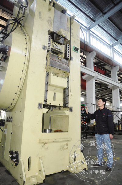 近年来,浙江威力锻压机械有限公司成立绍兴市级科技研发中心,不断研发高性能和大吨位新产品,650吨肘节连杆精密冷锻压力机、1000吨电动螺旋式压力机及其它数控精密压力机等产品相继问世,先后获得了4项实用专利及2项外观新型专利。该公司还被认定为绍兴市高新技术企业。图为工作人员正在调试肘节连杆精密冷锻压力机。