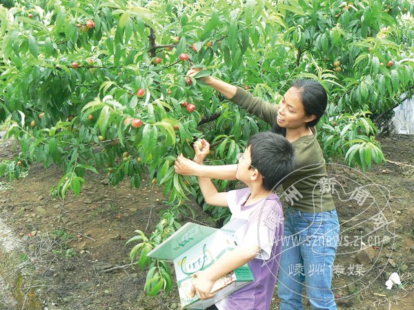本地早熟油桃新品“东方红”从5月12日起陆续成熟上市,市场价每公斤15元。位于崇仁镇新官桥的乡村农场油桃基地推出了回归大自然、体验农家生活的“亲子采摘”,吸引了大批游客前来。