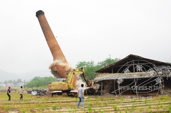 淘汰落后产能 推倒窑厂烟囱