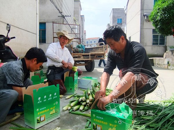 据了解,由于今年前期气温偏低,导致我市茭白产量有所下降,但由于价格上涨,今年茭农可能普遍增收。图为江夏村村民正在将刚采收下来的茭白进行包装。