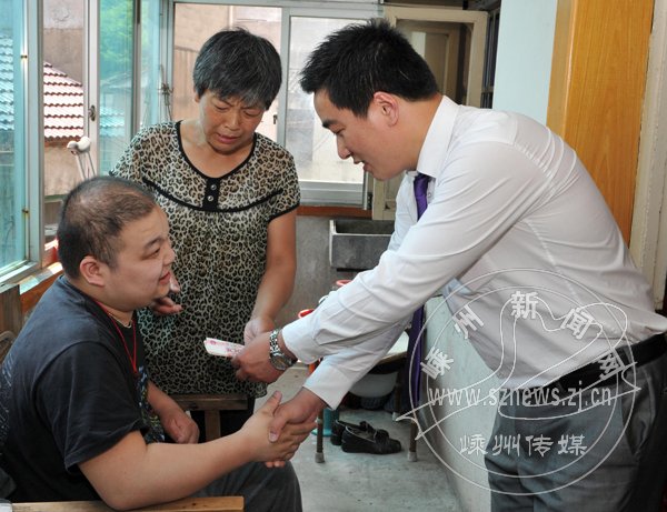 记者在现场看到,这位25岁的小伙子紧紧拉着市格瑞德国际名车馆总经理周叶锋的手,表达着发自内心的谢意。原来,昨日是格瑞德名车馆开业的日子,总经理周叶锋获悉艇湖社区的董方宇需要社会各界关爱的消息后,决定不搞隆重的开业仪式,将省下来的钱捐给董方宇一家。据悉,8年的“植物人”董方宇正在得到社会各界的关爱。图为现场捐款的感人场面。