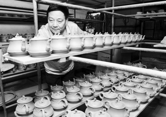 第八届中国(深圳)国际文化产业博览交易会(以下简称“文博会”)将于5月18日至21日在深圳会展中心举办。本届文博会在展出规模、展品质量方面都得到同步的拓展和提升,将更加突出“文化+创意、文化+科技、文化+旅游、文化+金融”的展会特色。浙江省非物质文化遗产名录的“嵊州紫砂”是本次“文博会”的参展品之一。这是昨天嵊州紫砂制作艺人正在制作参展的精品紫砂工艺品。【来源:天天商报】