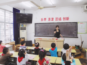 昨天下午,记者也当了一回学生,听茹茉莉老师上了一堂课。在没有任何准备的情况下,茹茉莉刚走进一(1)班,教室里就传来学生们阵阵欢快的叫声:“是茹老师,茹老师。”