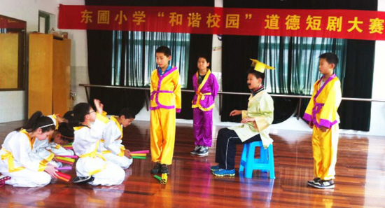 近日,东圃小学全校24个班级的学生坐在教室里,通过电视观看了学校举行的“和谐校园”道德短剧大赛。本次大赛作品形式丰富,有课本剧、音乐剧、小品等,更有学生自编自导自演的校园生活短剧。
