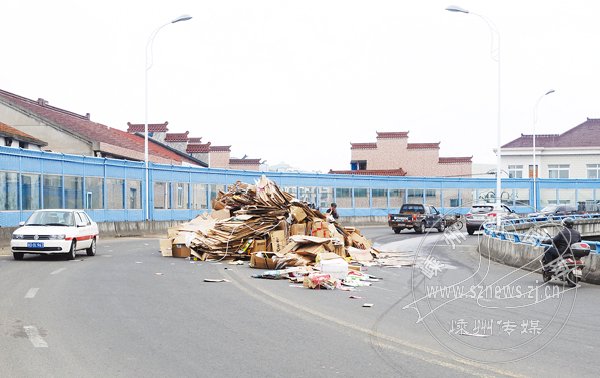 “估计散落在路面上的纸箱达2—3吨。幸亏当时旁边没有其它车辆,不然后果不堪设想。”据在现场的蒋家埠造纸厂工作人员介绍,出事的是该厂运送旧纸箱的车,当时车子从市区向厂里运输,由于纸箱装得太高,过引桥时开得快,造成车辆侧翻,还好没有人员伤亡。
