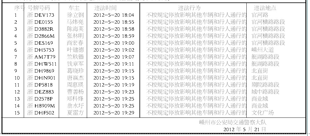 下列机动车和驾驶人因有交通违法行为被交警查处,现予以曝光: