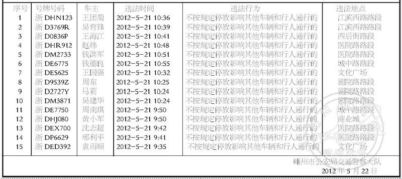 下列机动车和驾驶人因有交通违法行为被交警查处,现予以曝光: