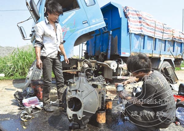 日前,在甬金高速公路我市黄泽出口不远的匝道口,两位修理工正在为抛锚的大货车大检修。在现场,来往车辆穿梭,临时支起的“修车摊”不仅有碍过往车辆通行,而且存在很大的安全隐患。有关人士建议,是否可在此建立一个维修服务站,为需要“急救”的车辆提供便捷的服务。