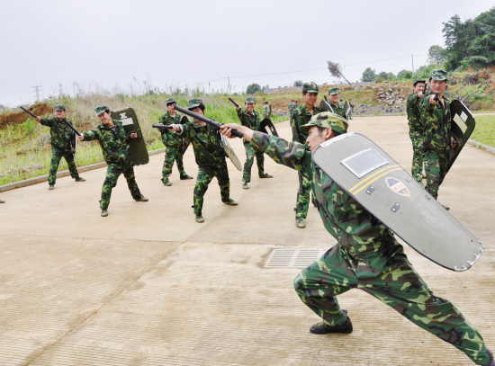 为切实提高我市民兵遂行任务和完成非战争军事行动任务的能力,连日来,市人武部组织开展了民兵应急分队军事训练。训练的主要内容有射击、盾牌警棍、手榴弹、水上抢险、山林灭火等,为我市抗洪抢险工作和其它应急任务作好准备。图为训练场面。