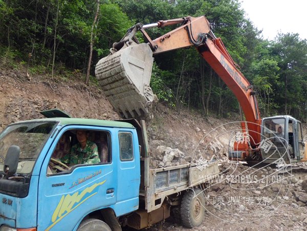 三界镇八郑村离村5公里的龙王塘山上,有茶叶、板栗、毛竹等经济林基地300多亩,以前村民们靠手提肩挑把农产品收下山,十分不便。近日,该村在上海创业的建筑业主郑国春,助推村民致富,出资200多万元建造一条长4.5公里、宽6米的林间道路,以方便村民运送茶叶、毛竹等农产品,深受村民好评。图为施工现场。