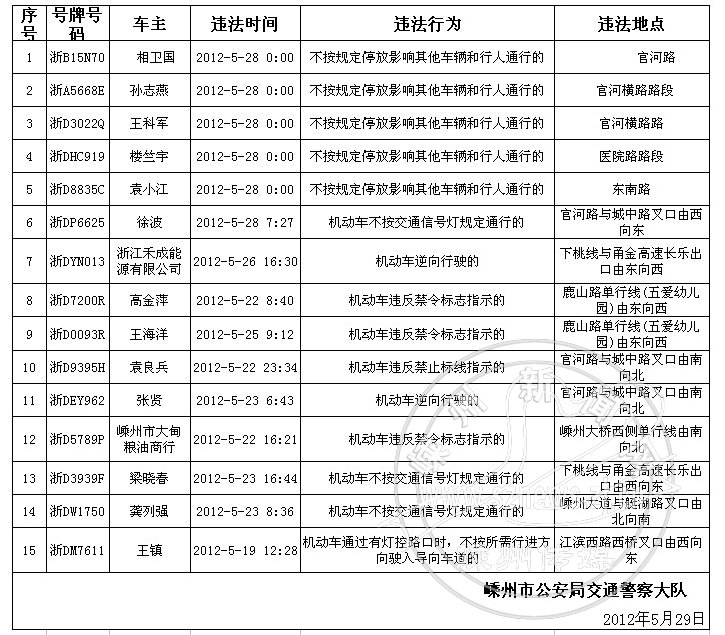 下列机动车和驾驶人因有交通违法行为被交警查处,现予以曝光: