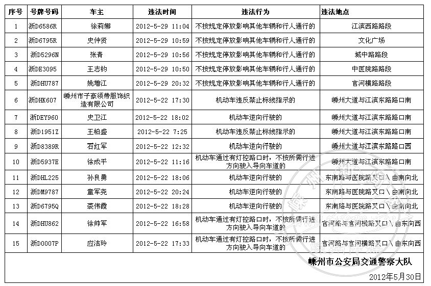 下列机动车和驾驶人因有交通违法行为被交警查处,现予以曝光:
