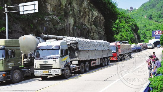 从5月28日夜10时到30日上午10时,嵊州市治超办与东阳市路政部门联动,在我市巡特警等的配合下,在S310省道37公里白峰岭路段共查获超限超载水泥车辆32辆,治安传唤2人。这是自2004年6月开始治理超限超载车辆以来最成功的一次行动。其中一辆牌号为皖KF1897重型半挂牵引车六轴车,车货总重118.62吨,超限63.62吨,超限率116% 。