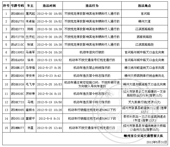 下列机动车和驾驶人因有交通违法行为被交警查处,现予以曝光: