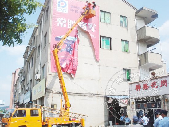 动用大吊机拆户外违规广告