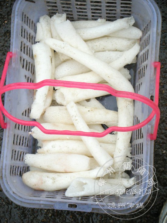 日前,记者在江滨市场一菜摊前,发现一白嫩的、顶端呈圆形、样子酷似茭白的东西,卖主介绍说,这是竹荪,虽然量稀少,但价格不贵,每支1元左右,与一支茭白的价格差不多。