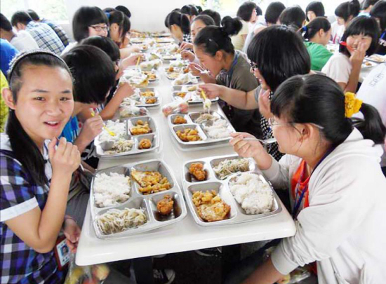 6月1日中午,蛟镇中学各班学生到食堂就餐时,意外地发现当天的伙食和平时有了变化,千名学生每人除了常规的3个菜外,还多了一份水果和一只荤菜,水果由荔枝、香蕉和桃子组成。这是学校为进一步改善学生伙食而想出的一项小措施,借用一个新词叫做“微服务”。