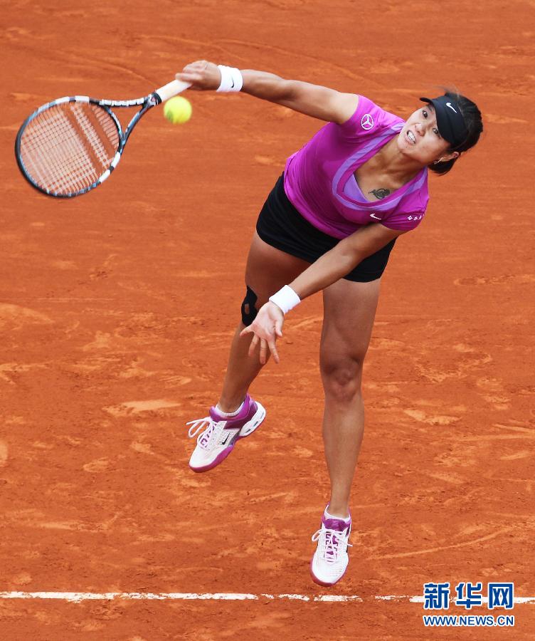 6月4日,李娜在比赛中。新华社记者高静摄