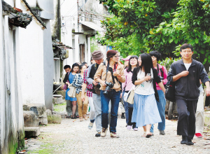 嵊州市金庭镇华堂村是王羲之后裔主要集聚地之一,被誉为“剡中第一村”,如今已是嵊州重要的古村旅游景点之一。图为近日游客正在华堂村观光。