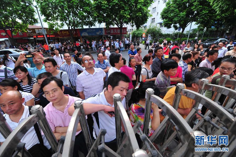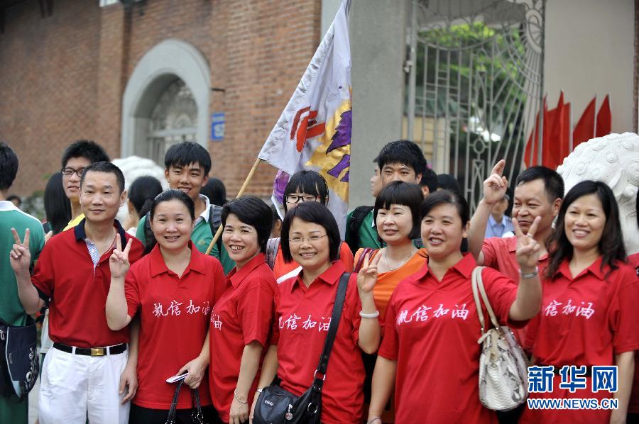 6月7日,在广州执信中学考点门口,家长助威团在为考生助威。当日是2012年全国高考第一天,共有约915万名考生报名参加考试。新华社记者陈晔华摄