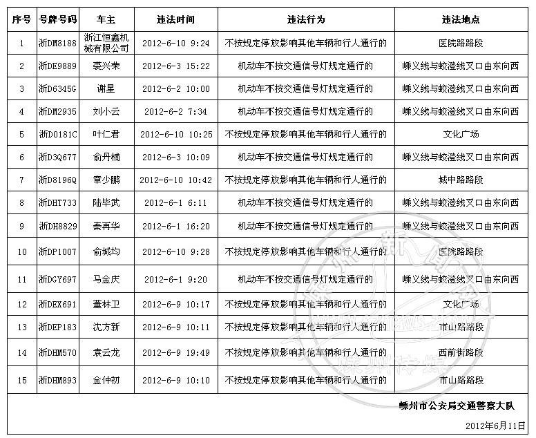 下列机动车和驾驶人因有交通违法行为被交警查处,现予以曝光: