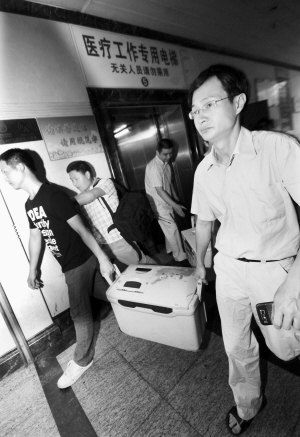 工作人员运送捐赠的器官