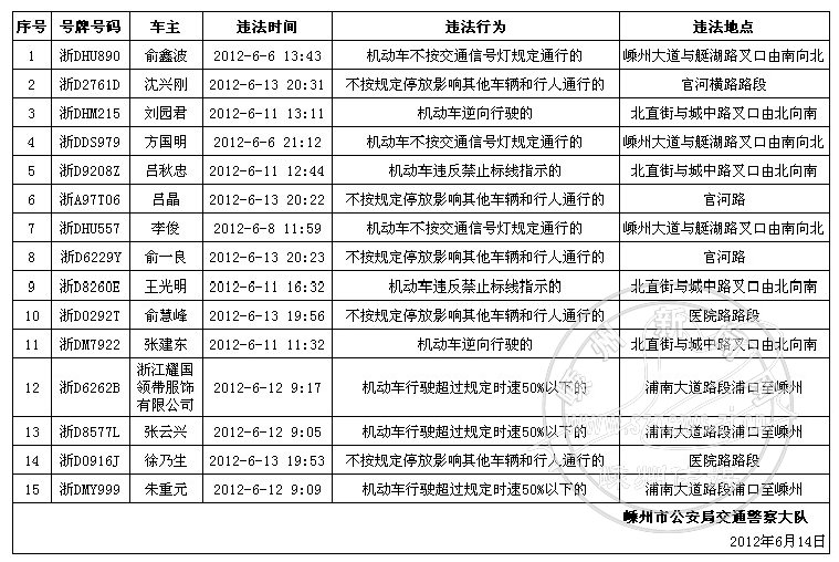 下列机动车和驾驶人因有交通违法行为被交警查处,现予以曝光:
