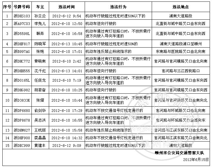 下列机动车和驾驶人因有交通违法行为被交警查处,现予以曝光:
