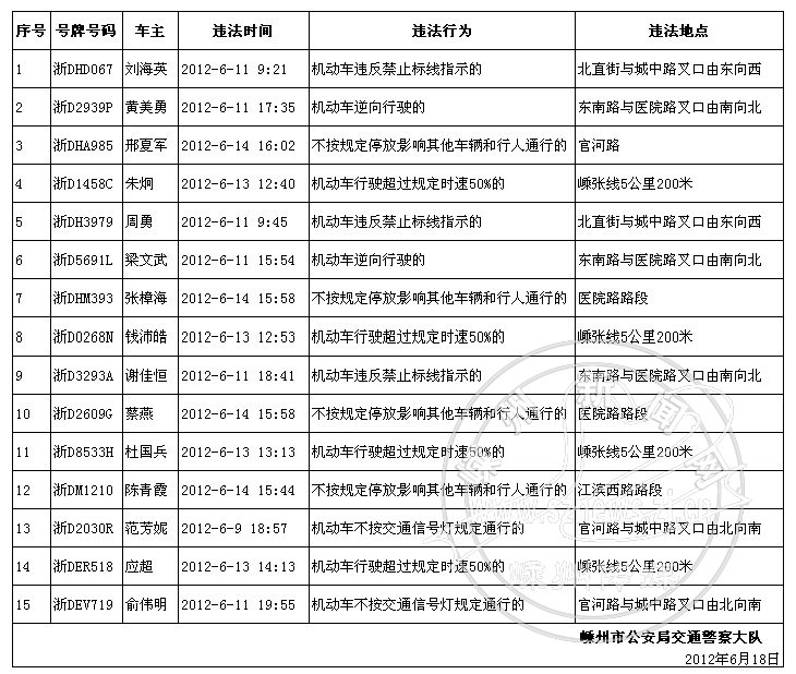 下列机动车和驾驶人因有交通违法行为被交警查处,现予以曝光: