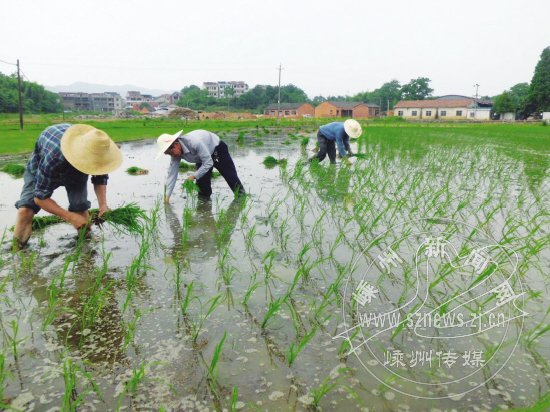 近日来,在三界镇农村,村民们早出晚归抢农时插种单季稻,一派繁忙景象。