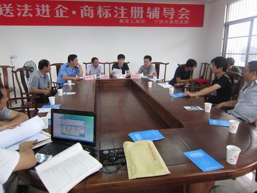 为进一步增强广大个私企业主们的法制意识,运用法律武器,提高商品竞争力。6月20日下午,个私协会黄泽分会党支部联合黄泽工商所等有关部门,在市仿古木雕行业协会开展了一次“送法进企、商标注册辅导”活动。分会8名党员和25家个私企业负责人参加了此次辅导培训。
