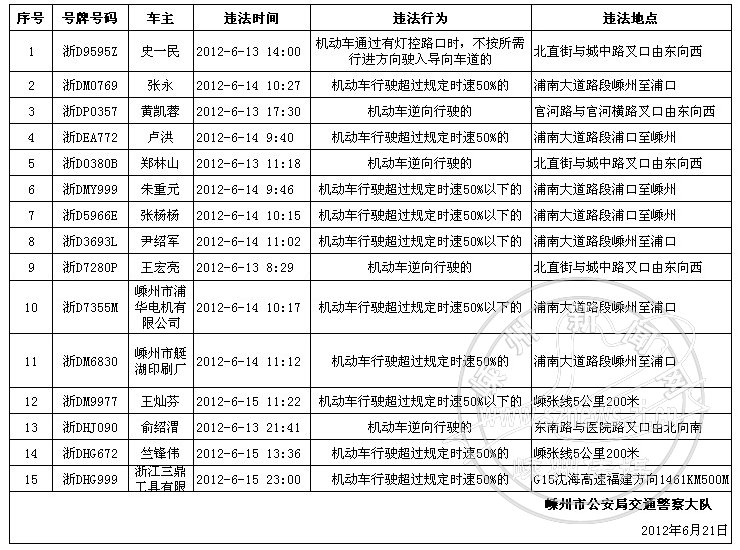 下列机动车和驾驶人因有交通违法行为被交警查处,现予以曝光: