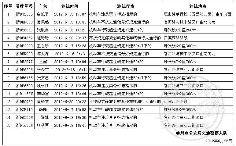 下列机动车和驾驶人因有交通违法行为被交警查处,现予以曝光: