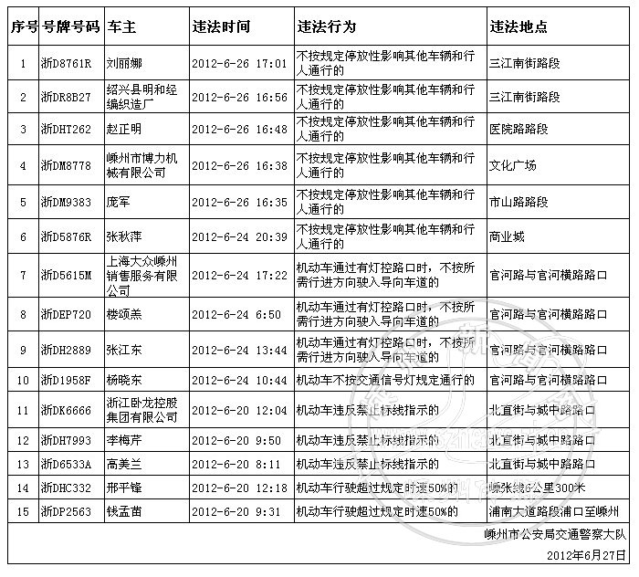 下列机动车和驾驶人因有交通违法行为被交警查处,现予以曝光: