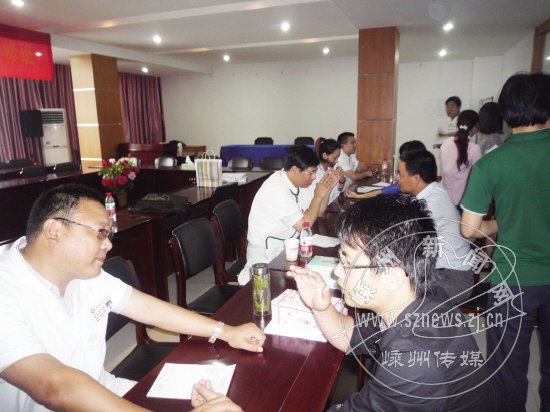 近日,市卫生局组织市人民医院、中医院专家到结对村和企业开展义诊,为甘霖镇求杓湾村、浙江双鸟机械有限公司近200名群众和职工提供了免费咨询、检查等服务。图为义诊现场。