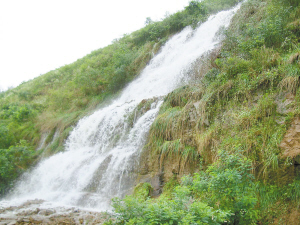 记者了解到,山体塌方的位置是在甬金高速公路往宁波方向嵊州长乐附近,当时雨水混着大量的泥石流从20米高的山脊上冲下,直接覆盖了宁波方向整个车道,强暴雨在塌方处形成了长达20多米的“瀑布”。