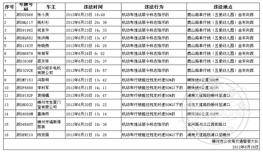 下列机动车和驾驶人因有交通违法行为被交警查处,现予以曝光:
