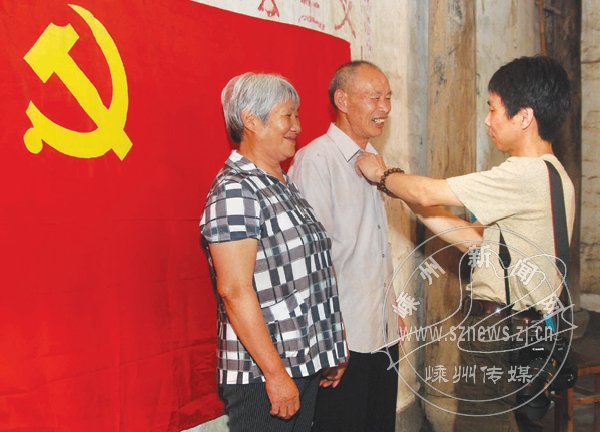 “快把衣服领子整一下,表情自然些。”面对镜头,67岁的老党员吕樟宝还是有些拘谨,他的妻子马上跑过去帮他抻了抻衣襟,理了理头发。“咔嚓”一声,吕樟宝脸上的笑纹刚刚绽放,几位摄影家就同时按下了快门。