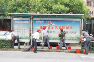 嵊州市交通运输局为深入推进省级示范文明城市创建工作,以崭新的面貌迎接建党91周年,组织开展了“清洁家园,喜庆‘七一’”活动。交通运输局机关及公路段、运管所、港航处等单位的100多名党员志愿者,带着扫帚、拖把、毛巾、水桶走上街头,对市区160多个公交站亭进行了清洗,不但为市民提供了清洁的候车环境,也进一步提升了城市交通的窗口形象。 【来源:天天商报】
