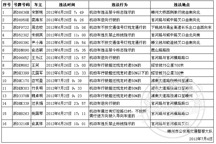 下列机动车和驾驶人因有交通违法行为被交警查处,现予以曝光: