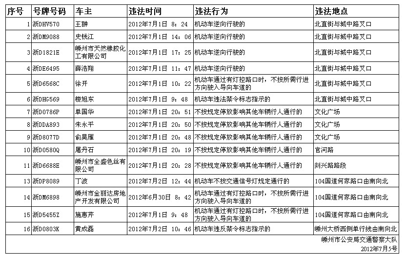 下列机动车和驾驶人因有交通违法行为被交警查处,现予以曝光:
