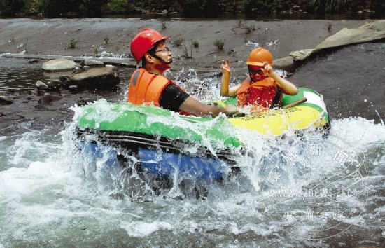 炎炎夏日,我市“百丈飞瀑漂流”和“青溪漂流”等漂流项目也随着气温火爆起来。市民们参加漂流,在冰凉的河水中感受清凉,在急流和险滩中感受刺激。据了解,单是周末到青溪漂流的游客每天就有200多人。图为青溪漂流的场景。