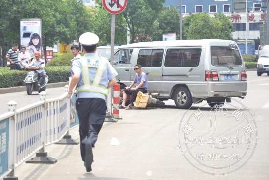 5分钟后,来不及等到喘着粗气的空调将车内温度降下,我们已经赶到了事故现场。经过魏警官初步分析,是一辆面包车在禁止左转掉头的区域掉头,将一辆摩托车撞倒在地。现场勘查、车辆检验、绘制事故现场图,魏警官娴熟而又专注地工作着。不到两分钟,记者就看到他的额头和脸颊上渗出了黄豆大的汗珠。