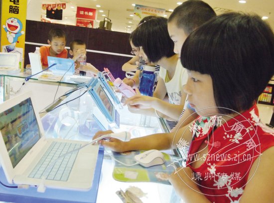 昨日,在国商大厦,一些学生正在试读学习机。正值暑假,我市商场、书店和民办的培训机构,到处可见学生们的身影,商家趁机使出浑身解数,纷纷推出针对学生的消费项目,共同分享“暑假经济”这块诱人的大蛋糕。